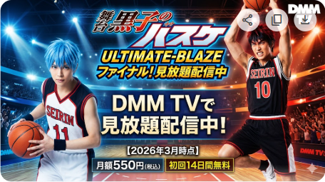 舞台『黒子のバスケ』ULTIMATE-BLAZEはDMM TVで見放題?配信状況まとめ【2026年3月】