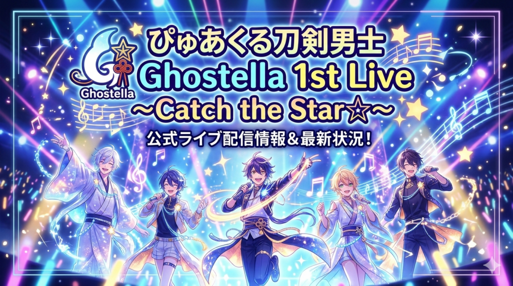 「ぴゅあくる刀剣男士 Ghostella 1st Live ~Catch the Star☆~」の配信状況をお探しですか?結論から言うと、本公演の千穐楽はDMM TVにて独占ライブ配信されました。ただし見逃し配信期間は2025年12月7日で終了しており、現時点では視聴できない状況です... -