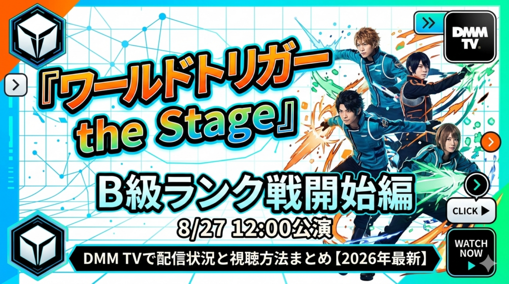 【『ワールドトリガー the Stage』B級ランク戦開始編(8/27 12:00公演)はDMM TVで見れる?配信状況と視聴方法まとめ【2026年最新】】『ワールドトリガー the Stage』B級ランク戦開始編の8月27日(日)12:00公演(全景映像)は、DMM TVで配信されています... -