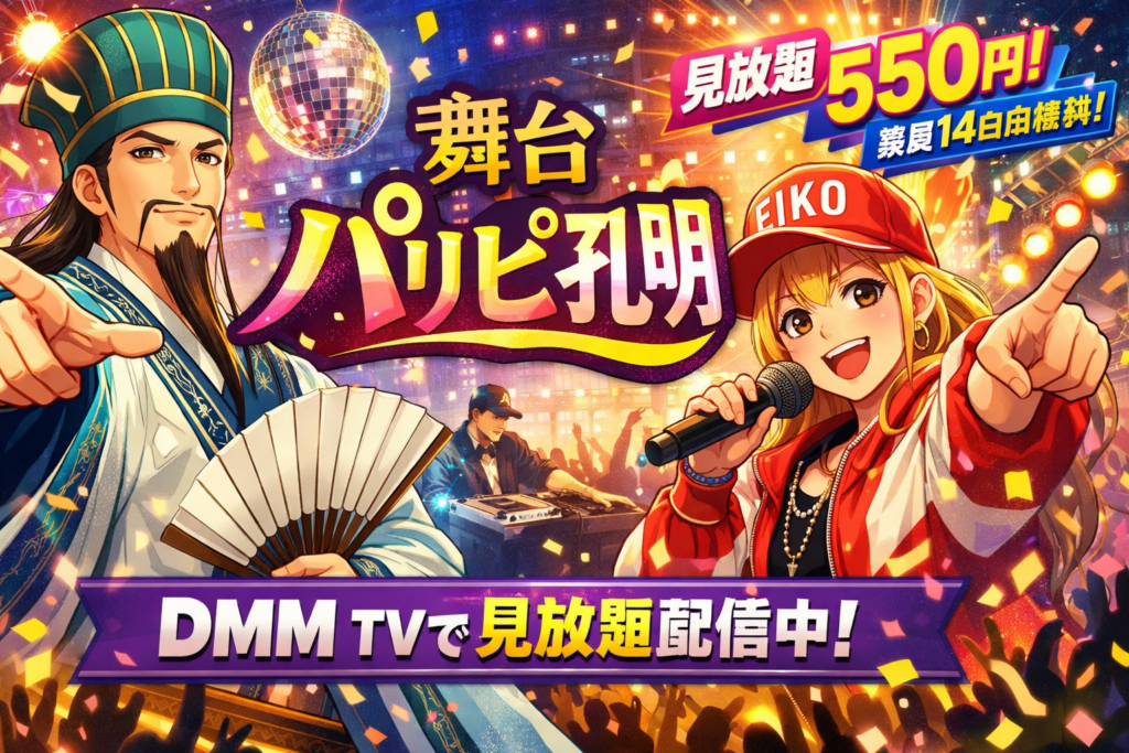 舞台『パリピ孔明』は、DMM TVで見放題配信中です。月額550円(税込)で視聴でき、初回14日間は無料体験が可能です(2026年3月23日確認)。漫画・アニメ・ドラマと快進撃を続けてきた人気作品がついに舞台化され、その熱量そのままに自宅でも楽しめます。... -