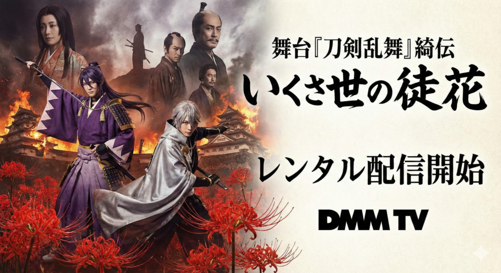 舞台『刀剣乱舞』綺伝 いくさ世の徒花がどこで見れるかを調査。DMMでの配信状況(配信有無・形式・期限)を事実ベースでまとめています。