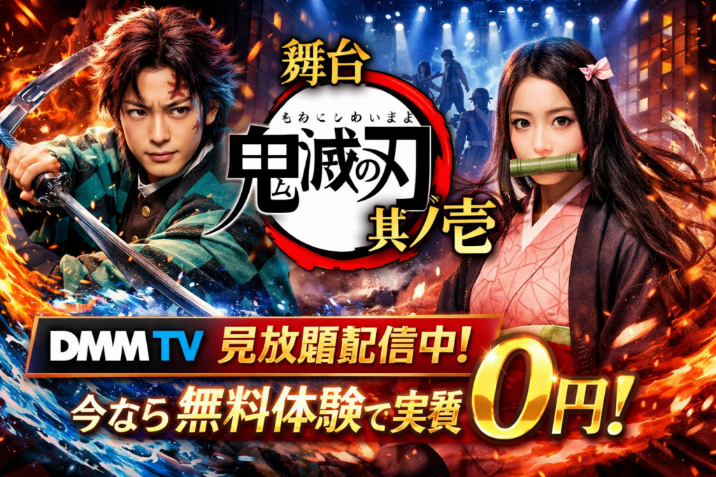 舞台「鬼滅の刃」其ノ壱はDMM TVで見放題配信中。初回14日間無料体験で実質0円で視聴可能です。キャスト・あらすじ・見どころ・口コミ・シリーズ全作の情報を徹底まとめ。2026年6月上演の最新作・其ノ陸情報も掲載。 -