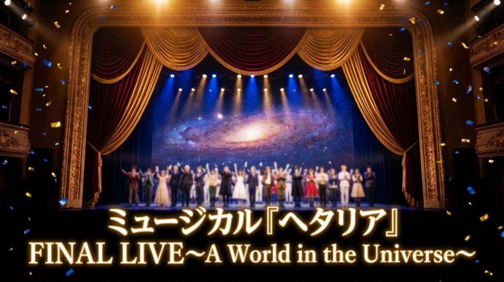 ミュージカル『ヘタリア』FINAL LIVE〜A World in the Universe〜はDMM TVで見放題配信中。幕張公演・大阪公演の両方を月額550円で何度でも視聴可能。初回14日間無料体験あり。配信状況・キャスト・見どころを詳しく解説します。 -