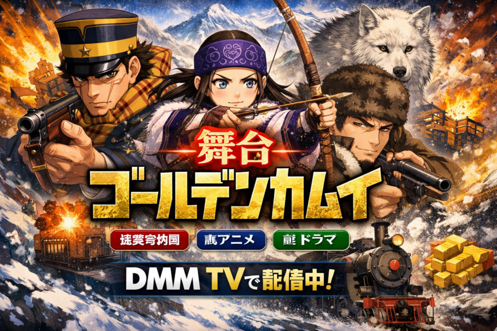 舞台『ゴールデンカムイ』の2.5次元舞台版は2026年3月時点で未制作。DMM TVではアニメ第1〜4期・実写映画・ドラマ全9話が見放題で配信中。月額550円で初回14日間無料。映画最新作『網走監獄襲撃編』公開前の予習にも最適です。
