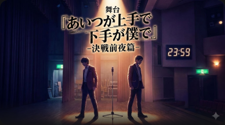 『舞台「あいつが上手で下手が僕で」-決戦前夜篇-』はDMMで見放題配信中!本格漫才×青春群像劇の感動舞台を今すぐ視聴可能。料金・無料体験の条件・視聴方法を徹底解説。【2026年2月12日最新情報】 -