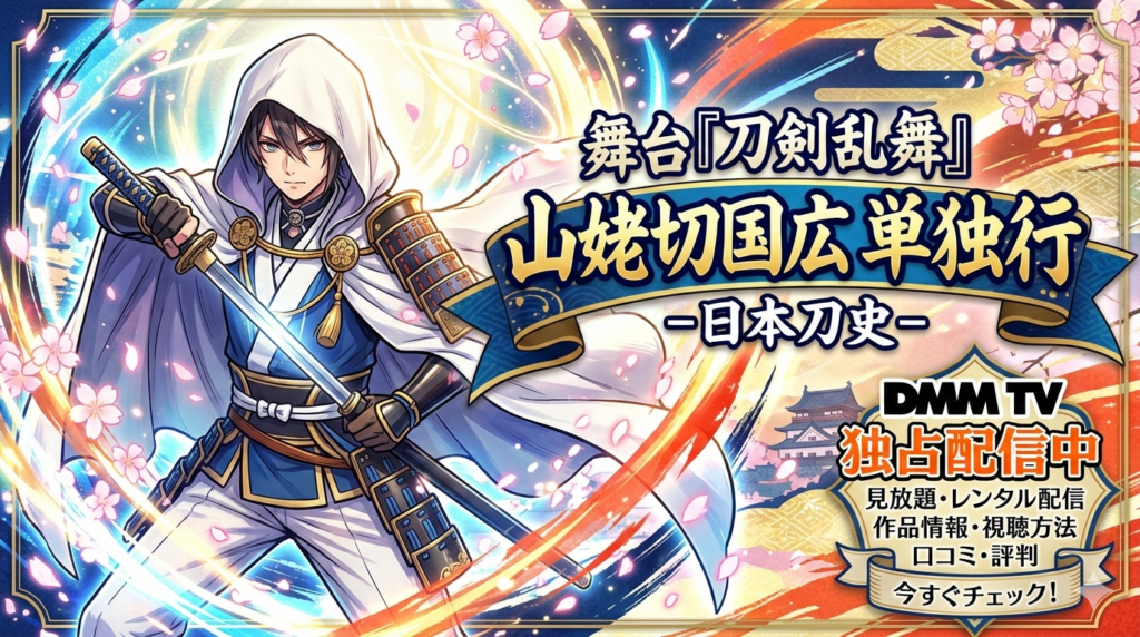 舞台『刀剣乱舞』山姥切国広 単独行 -日本刀史-の配信状況を2026年2月最新情報でまとめました。DMM TV独占配信のレンタル料金・見放題実績・見どころ・口コミまで徹底解説します。 -
