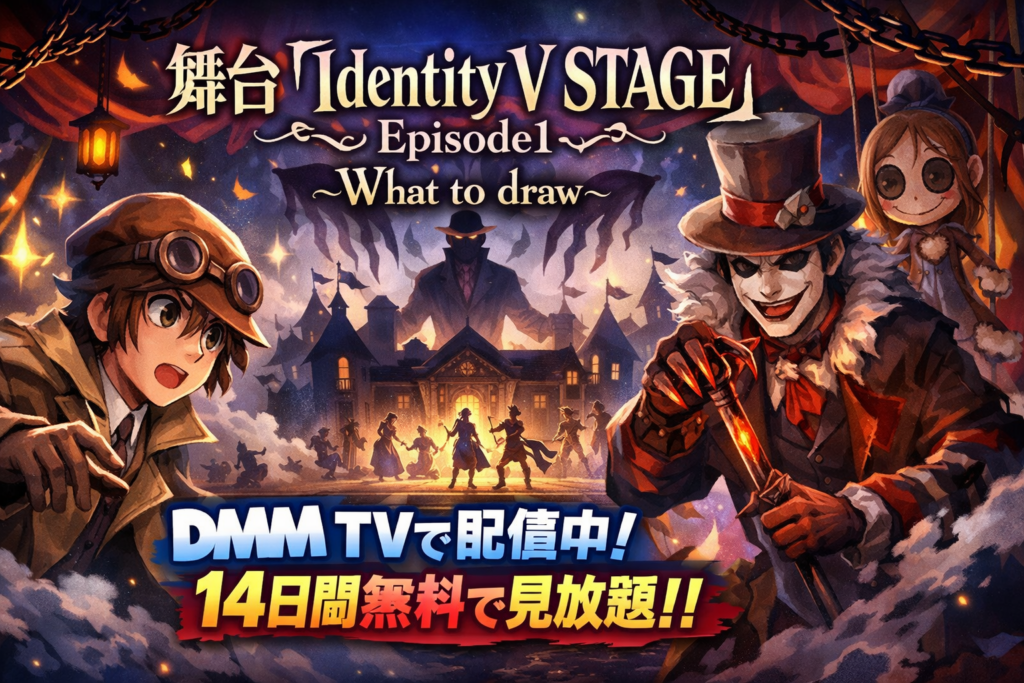 舞台『Identity V STAGE』Episode1『What to draw』のDMM TV配信状況を2026年2月最新情報でまとめました。Side:S・Side:Hの両方が見放題で視聴可能。初回14日間無料体験の活用法や視聴順、Blu-rayとの違いも詳しく解説します。 -