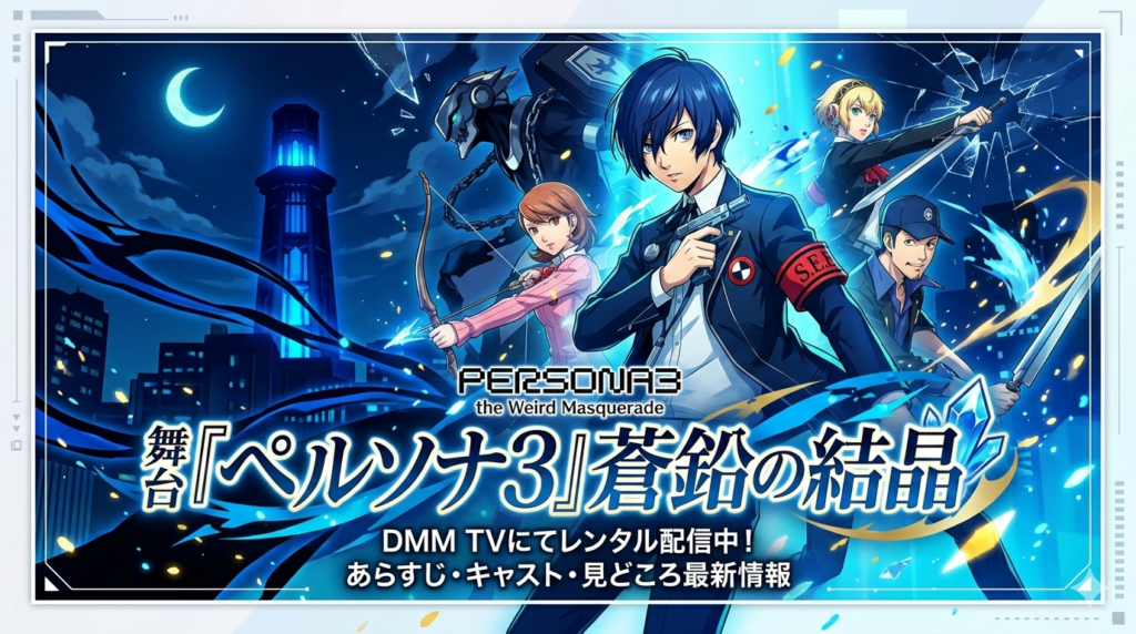 舞台『PERSONA3 the Weird Masquerade ~蒼鉛の結晶~』の配信状況を2026年2月最新情報でまとめました。DMM TVでのレンタル視聴方法、あらすじ、キャスト、口コミ・評判、見どころを網羅的に紹介します。 -