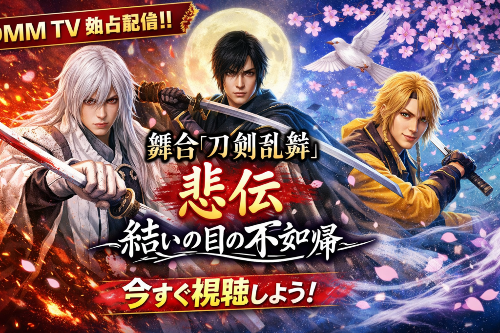 舞台『刀剣乱舞』悲伝 結いの目の不如帰のDMM TV配信状況を2026年2月最新情報でまとめました。レンタル料金・見放題スケジュール・3バージョンの違い・視聴順ガイドまで徹底解説。初回14日間無料トライアルあり。 -