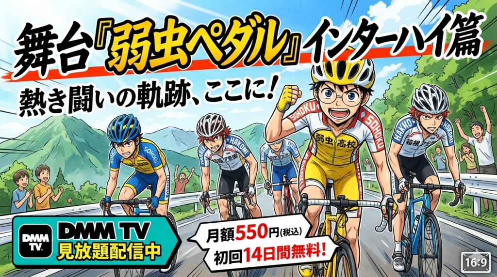 舞台『弱虫ペダル』インターハイ篇3部作(The First Result/The Second Order/The WINNER)のDMM TV配信状況を2026年3月最新情報で解説。月額550円見放題&初回14日間無料で視聴可能です。