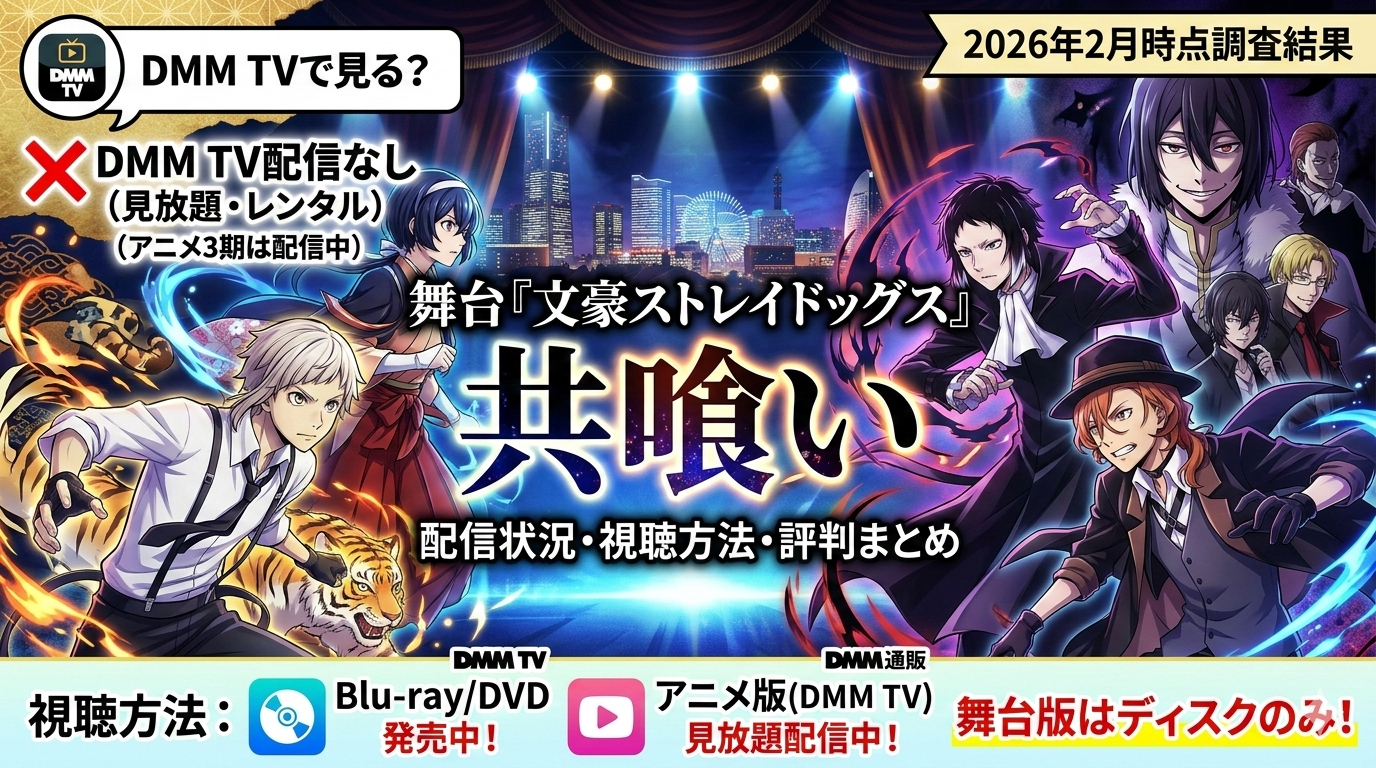 テニミュ以外の2.5次元舞台作品に興味がある方は、「ミュージカル『薄桜鬼』HAKU-MYU LIVEはDMM TVで見放題配信中!全シリーズの視聴方法・キャスト・口コミまとめ【2026年2月最新】」もおすすめです。