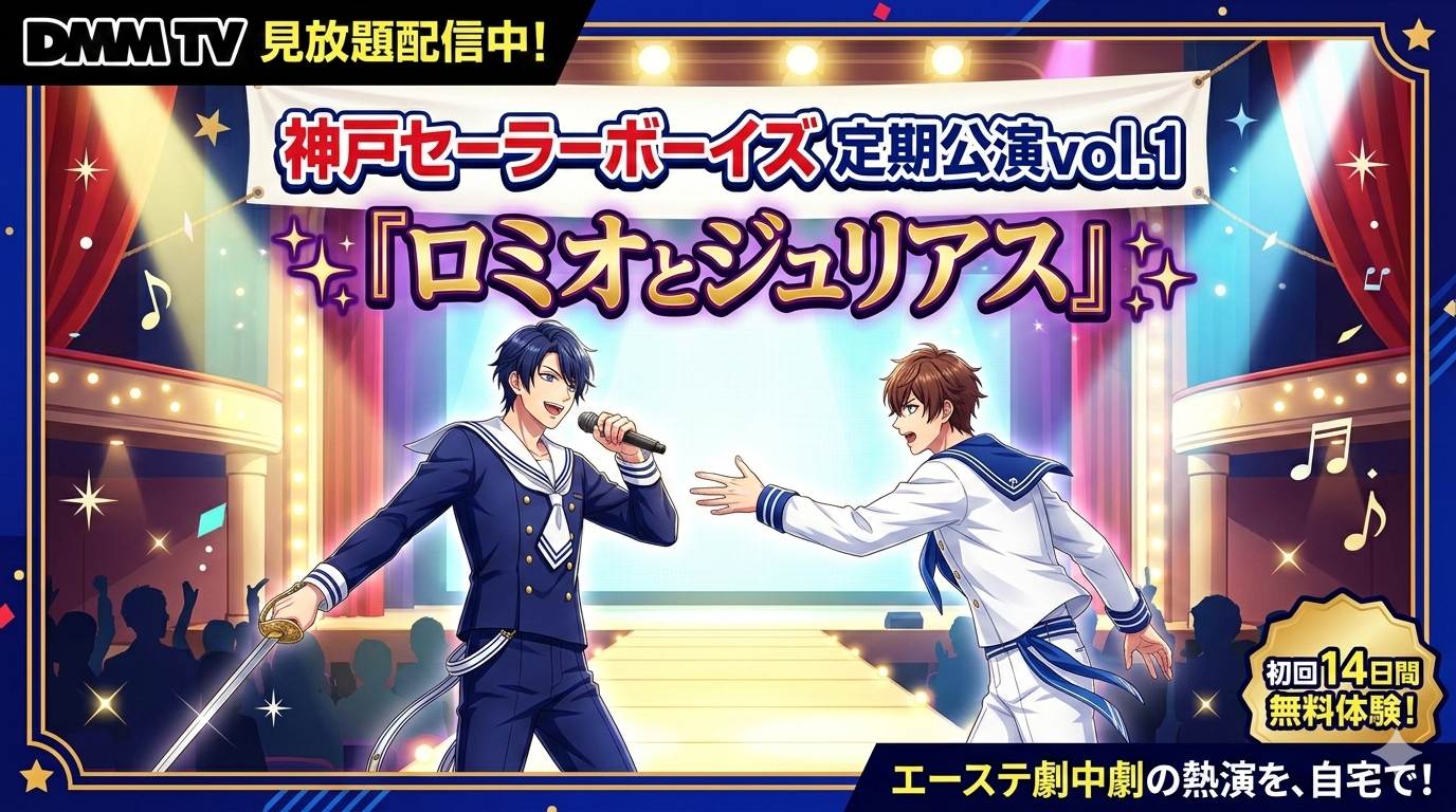 ミュージカル『テニスの王子様』4thシーズン 青学vs氷帝は、2026年3月1日時点ではDMM TVでの配信が確認できていません。しかし、DMM TVはテニミュシリーズの配信実績が豊富であり、今後再び配信が開始される可能性は十分にあります。DMM TVは月額550円(税込)という手頃な価格で、2.5次元舞台をはじめとする190,000本以上の作品が見放題です。初回14日間の無料体験を活用して、テニミュ以外の2.5次元舞台作品もぜひチェックしてみてください。配信状況は随時更新していきますので、当サイトをブックマークしておくと最新情報を見逃しません。
