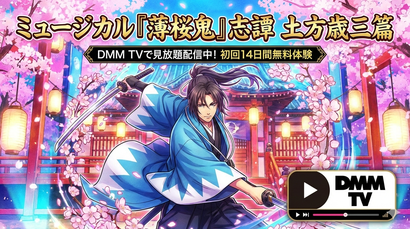 2026年2月時点で、舞台『弱虫ペダル』箱根学園篇~眠れる直線鬼~はDMM TVの2.5次元・舞台カテゴリにて見放題作品として配信されています。DMMプレミアム会員であれば追加のレンタル料金や購入費用は一切不要で、全編を何度でも繰り返し視聴可能です。初めてDMM TVを利用する方は14日間の無料体験が適用されるため、期間中に視聴すれば実質0円で本作を楽しめます。